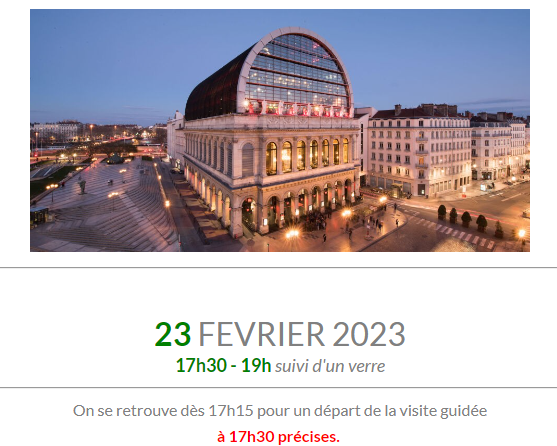 Julie Thomas et Adrien Pelletant, Présidents du Club Cordélia, et l’ensemble du bureau ont le plaisir de vous convier à une visite de l’Opéra de Lyon qui sera suivie d’un verre de l’amitié.